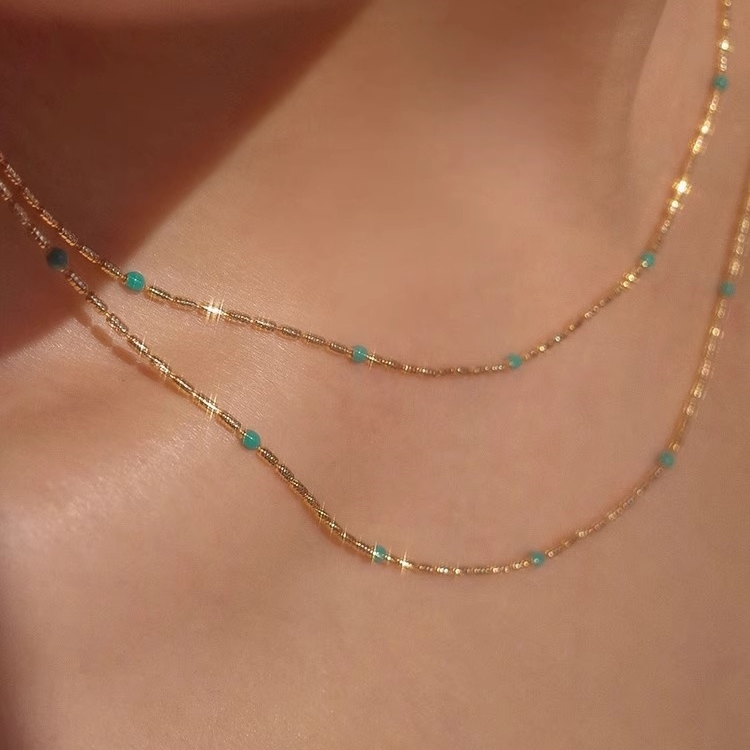 ターコイズがアクセントになり、綺麗と可愛いを掛け合わせたネックレス。