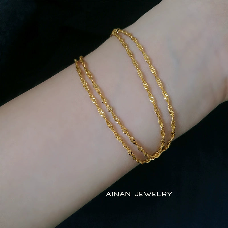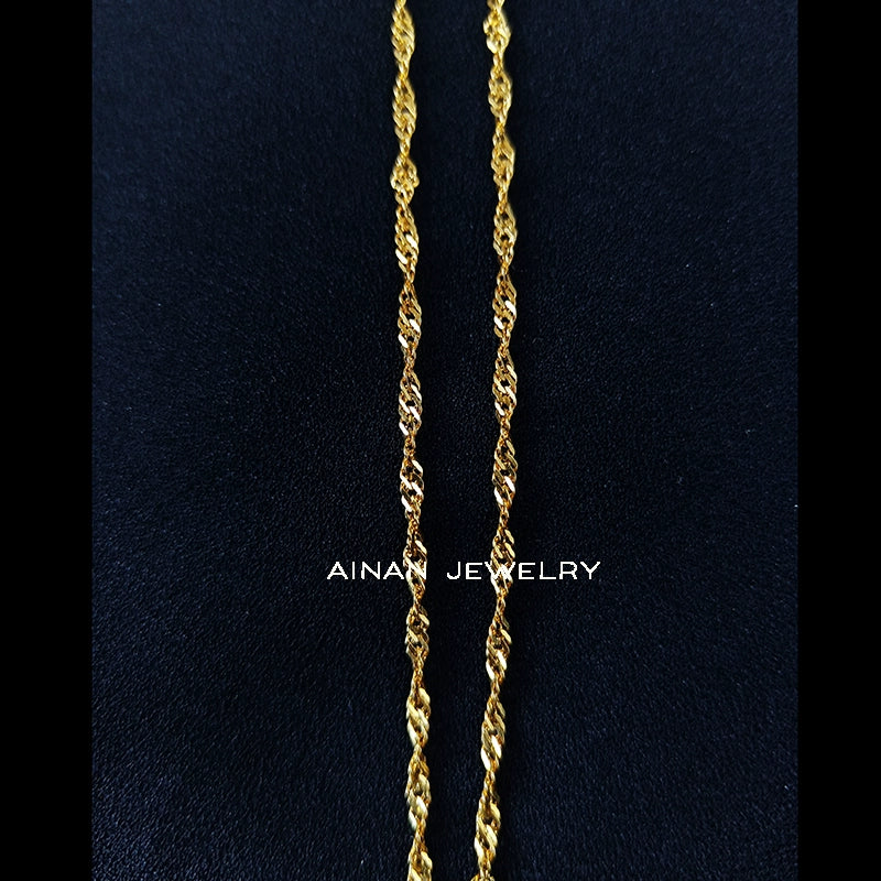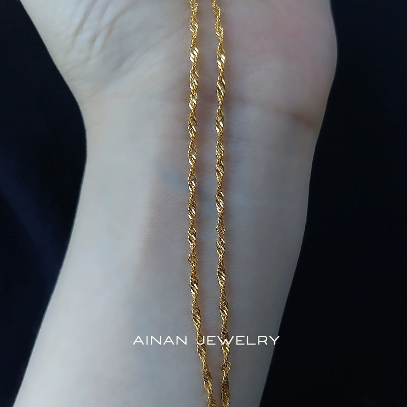 ツイストしたチェーンがキラキラ輝き、首元を華やかにしてくれます。