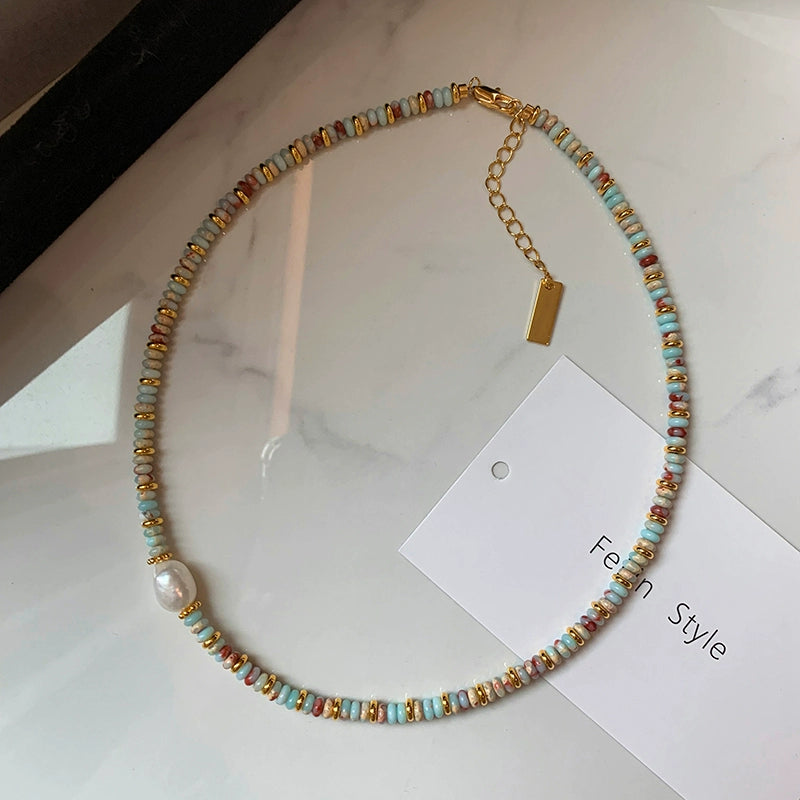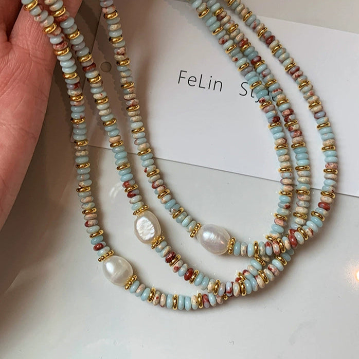 24K厚メッキ+天然石+天然淡水真珠